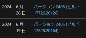 例えば、最新チャネルの 6/26 において、バージョンが 2405 から 2406 に上がっておりますので、これは機能更新となります。